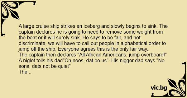 The captain comes back and says "unfortunately, we still haven't lost enough weight yet. I will have to ask all colored people to jump overboard."