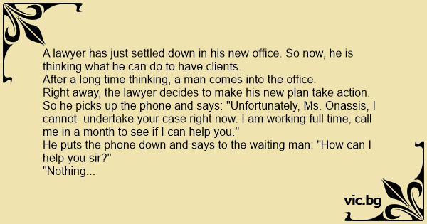 A lawyer has just settled down in his new office. So now, he is thinking what he can do to have clients.