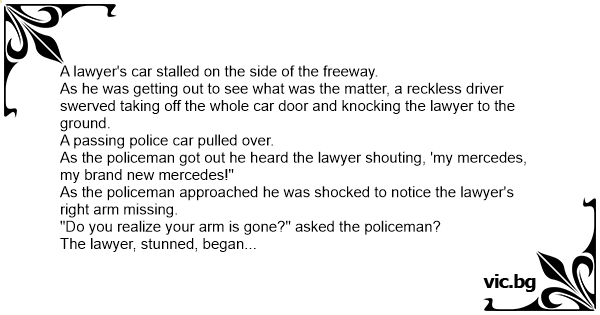 As the policeman got out he heard the lawyer shouting, 'my mercedes, my brand new mercedes!"