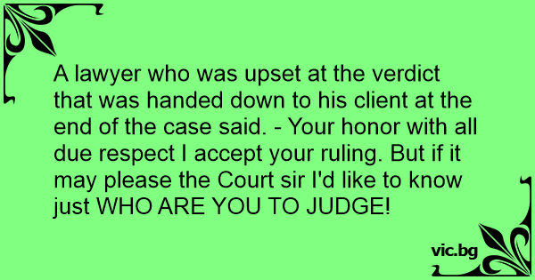 A lawyer who was upset at the verdict that was handed down to his client at the end of the case said. - Your honor with all due respect I accept your ruling. But if it may please the Court sir I'd like to know just WHO ARE YOU TO JUDGE!