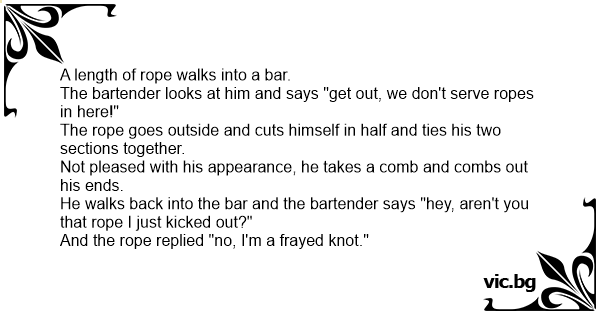 He walks back into the bar and the bartender says "hey, aren't you that rope I just kicked out?"