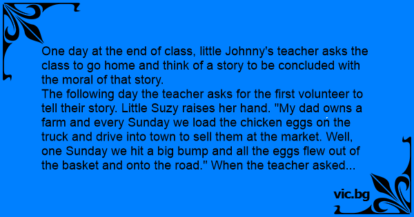One day at the end of class, little Johnny's teacher asks the class to go home and think of a story to be concluded with the moral of that story.