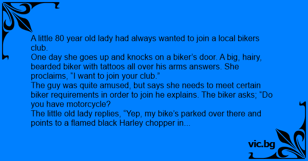 A little 80 year old lady had always wanted to join a local bikers club.