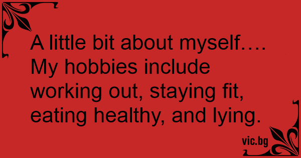 My hobbies include working out, staying fit, eating healthy, and lying.