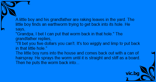 "Grandpa, I bet I can put that worm back in that hole." The grandfather replies,
