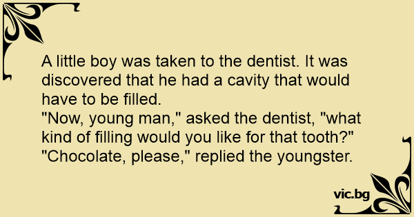 "Now, young man," asked the dentist, "what kind of filling would you like for that tooth?"