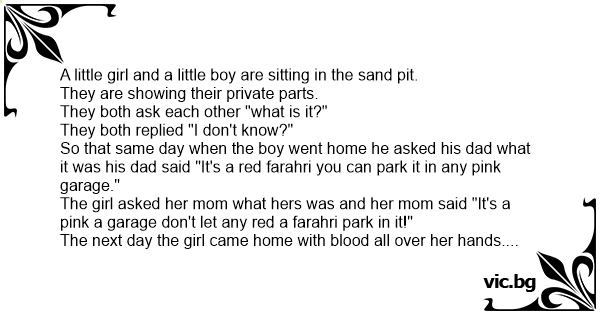 So that same day when the boy went home he asked his dad what it was his dad said "It's a red farahri you can park it in any pink garage."