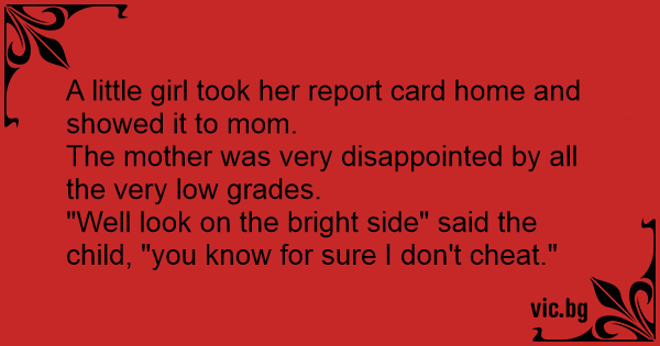 A little girl took her report card home and showed it to mom.
