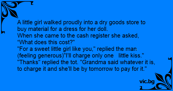 "Thanks" replied the tot. "Grandma said whatever it is, to charge it and she'll be by tomorrow to pay for it."
