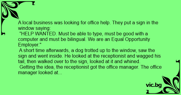 The manager was stunned, but then told the dog, "The sign says you have to be good with a computer."