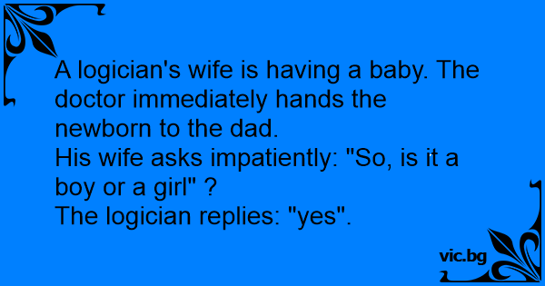 A logician's wife is having a baby. The doctor immediately hands the newborn to the dad.