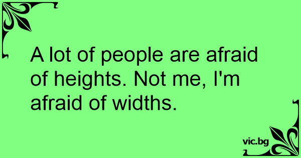 A lot of people are afraid of heights. Not me, I'm afraid of widths.