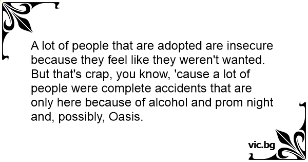 A lot of people that are adopted are insecure because they feel like they weren't wanted. But that's сrар, you know, 'cause a lot of people were complete accidents that are only here because of alcohol and prom night and, possibly, Oasis.
