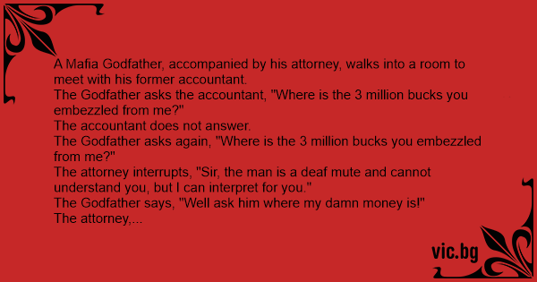 The Godfather asks the accountant, "Where is the 3 million bucks you embezzled from me?"