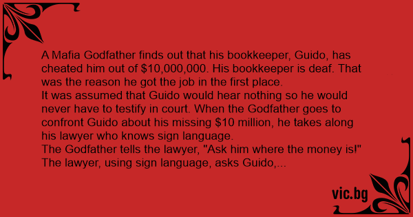 Кръстникът на мафията открива, че неговият глухоням счетоводител, Гуидо го е измамил с 10 000 000 долара. Понеже е глухоням, кръсникът предполагаше, че никога няма да чуе нищо и по тази причина...