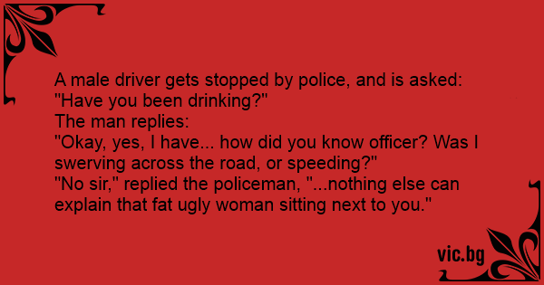 "No sir," replied the policeman, "...nothing else can explain that fат ugly woman sitting next to you."