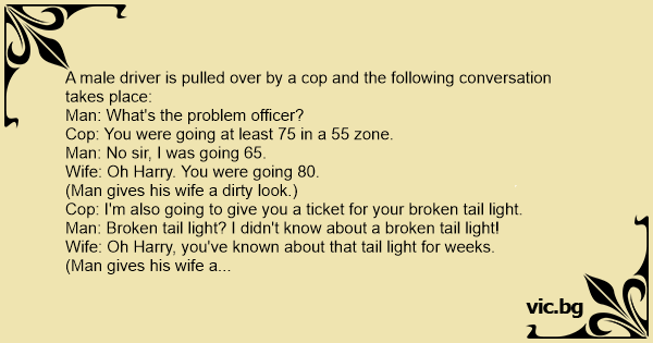 Wife: Oh Harry, you've known about that tail light for weeks.