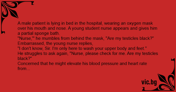 "Nurse,"' he mumbles from behind the mask, "Are my testicles black?"