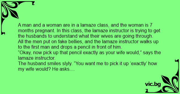“Okay, now pick up that pencil exactly as your wife would,” says the lamaze instructor.
