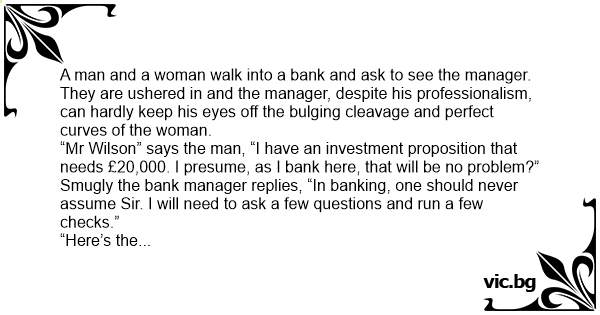 “My wife” says the man. “In banking, Mr Wilson, one should never assume.”