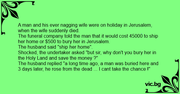 Shocked, the undertaker asked "but sir, why don't you bury her in the Holy Land and save the money ?"