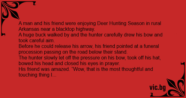 Before he could release his arrow, his friend pointed at a funeral procession passing on the road below their stand.