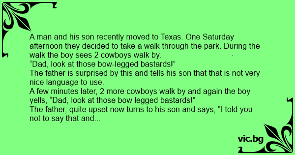 A few minutes later, 2 more cowboys walk by and again the boy yells, “Dad, look at those bow legged ваsтаrds!”