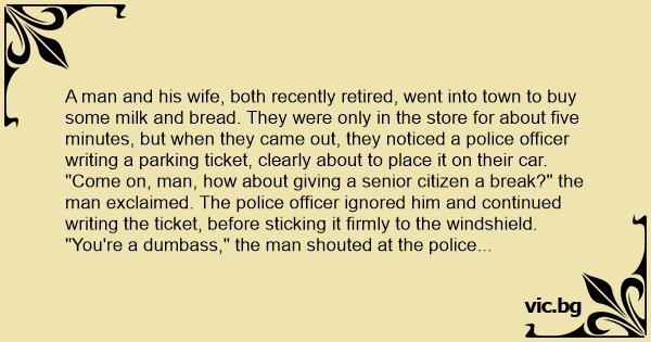 "Come on, man, how about giving a senior citizen a break?" the man exclaimed. The police officer ignored him and continued writing the ticket, before sticking it firmly to the windshield. "You're a duмваss," the man shouted at the police officer.