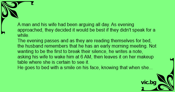 A man and his wife had been arguing all day. As evening approached, they decided it would be best if they didn't speak for a while.