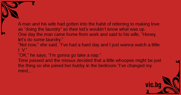 Time passed and the missus decided that a little whoopee might be just the thing so she joined her hubby in the bedroom.”I’ve changed my mind, let’s do some laundry ” she said.