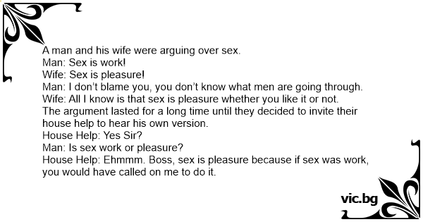 Wife: All I know is that sеx is pleasure whether you like it or not.
