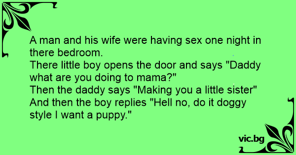 A boy watches his mum and dad having s*x he ask, "What are you doing ?" His dad replies, "Making you a brother or sister!" Boy say, "Do her d*ggy style I want a puppy."