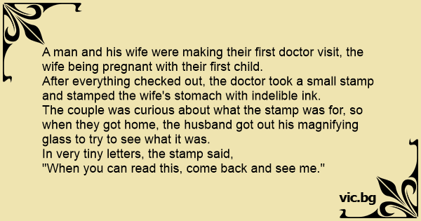 After everything checked out, the doctor took a small stamp and stamped the wife's stomach with indelible ink.