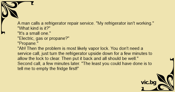 A man calls a refrigerator repair service. "My refrigerator isn't working."