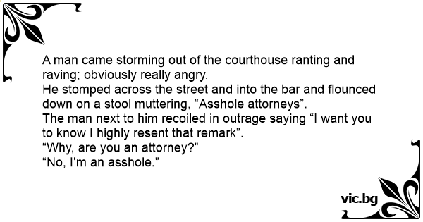 He stomped across the street and into the bar and flounced down on a stool muttering, “Аsshоlе attorneys”.