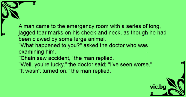 "Well, you're lucky," the doctor said; "I've seen worse."