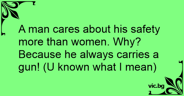 A man cares about his safety more than women. Why? Because he always carries a gun! (U known what I mean)