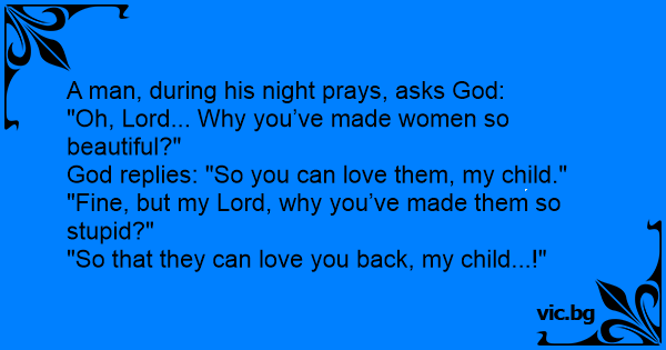 Hvorfor er kvinder dumme og smukke? – Smukke så mændene vil forelske sig i dem. – Og dumme så de vil forelske sig i mændene