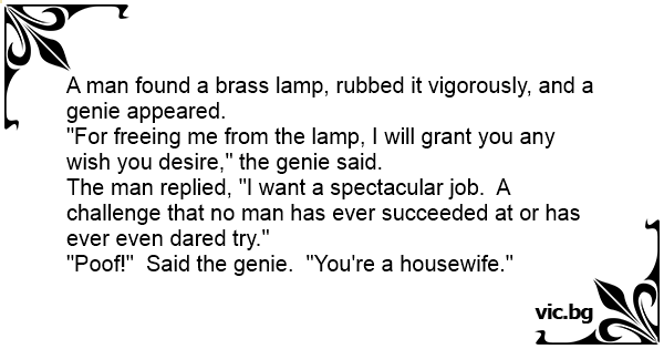 "Рооf!" Said the genie. "You're a housewife."