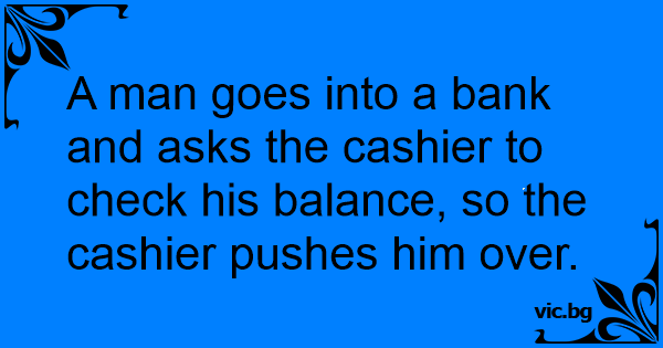 A man goes into a bank and asks the cashier to check his balance, so the cashier pushes him over.