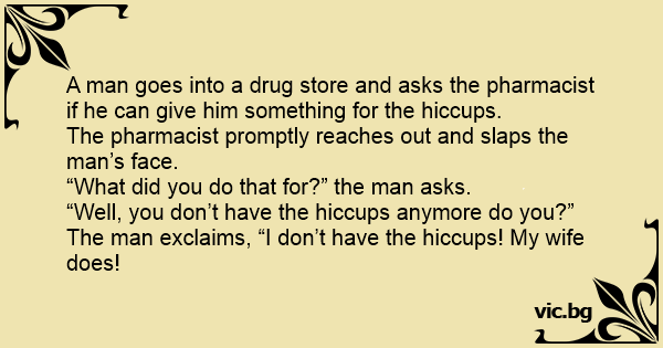 A man goes into a drug store and asks the pharmacist if he can give him something for the hiccups.