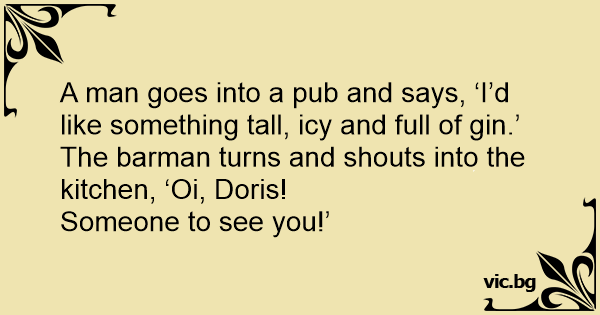 A man goes into a pub and says, ‘I’d like something tall, icy and full of gin.’