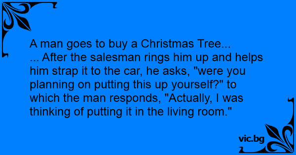 A man goes to buy a Christmas Tree... ... After the salesman rings him up and helps him strap it to the car, he asks, "were you planning on putting this up yourself?" to which the man responds, "Actually, I was thinking of putting it in the living room."