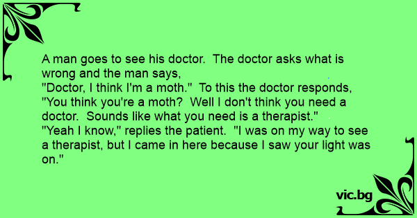 "Doctor, I think I'm a moth." To this the doctor responds, "You think you're a moth? Well I don't think you need a doctor. Sounds like what you need is a therapist."