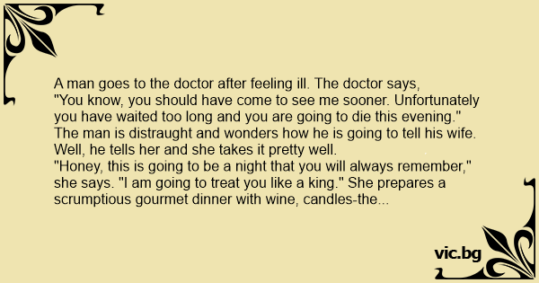 "You know, you should have come to see me sooner. Unfortunately you have waited too long and you are going to die this evening."
