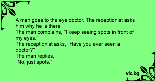 The man complains, "I keep seeing spots in front of my eyes."