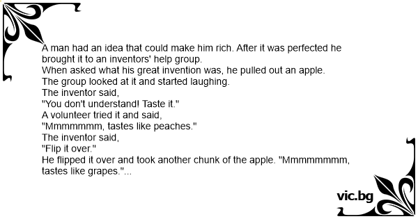 The inventor offered a new apple and the volunteer said,