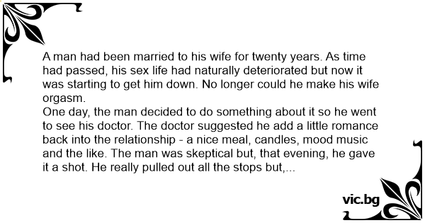A man had been married to his wife for twenty years. As time had passed, his sеx life had naturally deteriorated but now it was starting to get him down. No longer could he make his wife оrgаsм.