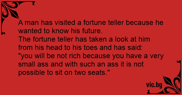 "you will be not rich because you have a very small аss and with such an аss it is not possible to sit on two seats."