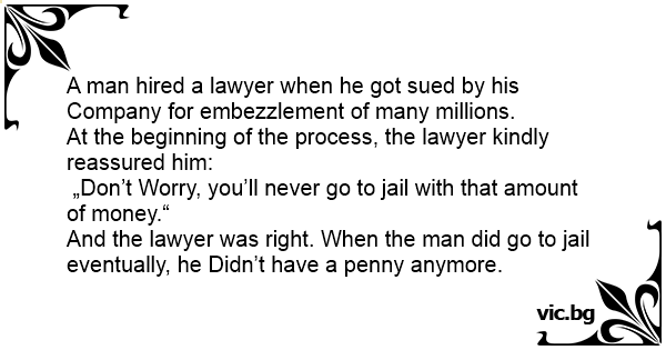 And the lawyer was right. When the man did go to jail eventually, he Didn’t have a penny anymore.